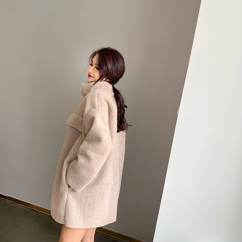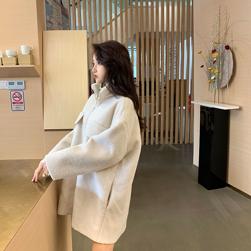 新款韓版百搭中長款寬松加厚開衫長袖復古chic氣質秋冬拉鏈外套潮