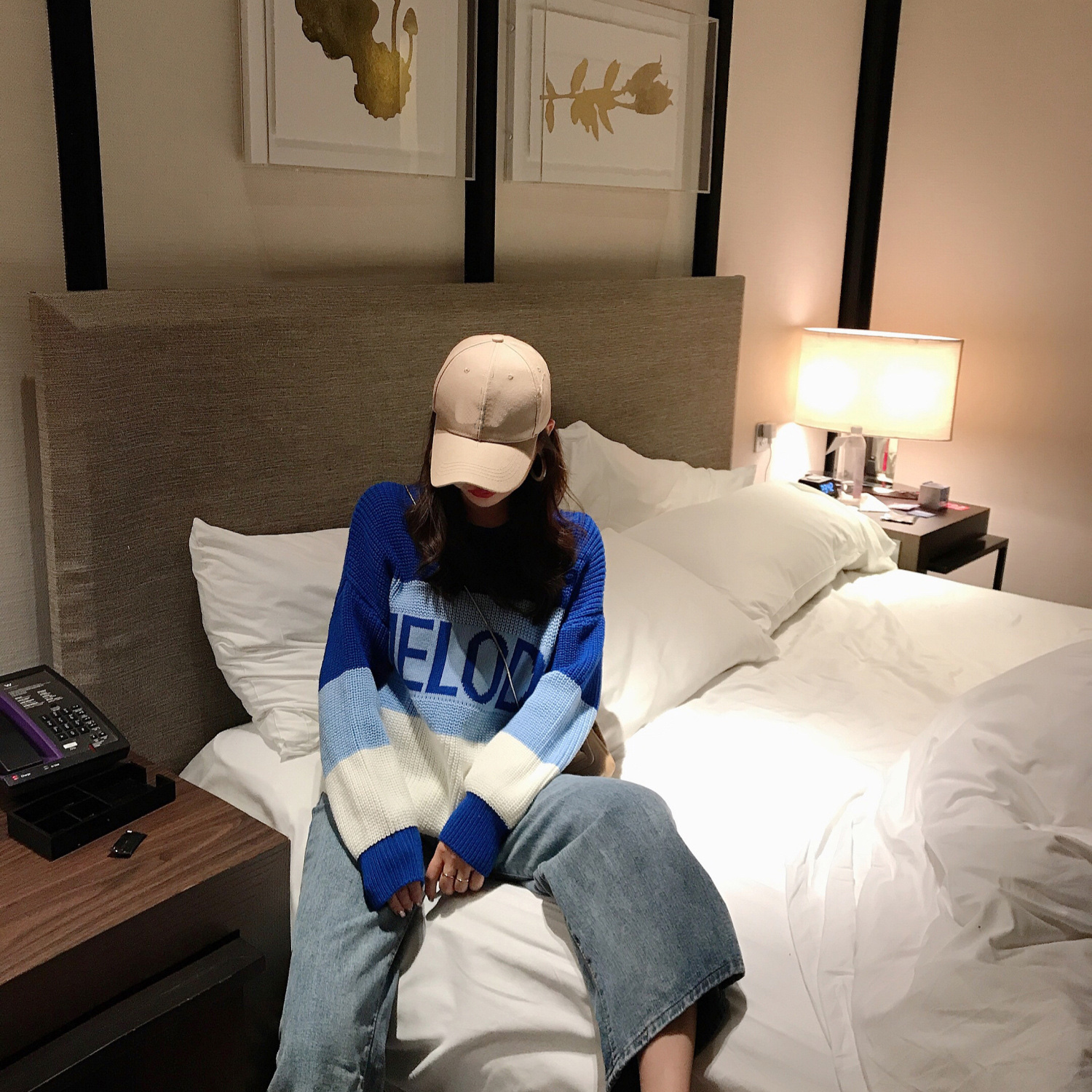2018韓版時尚新款早秋針織衫女長袖寬松漸變色字母圓領打底毛衣潮