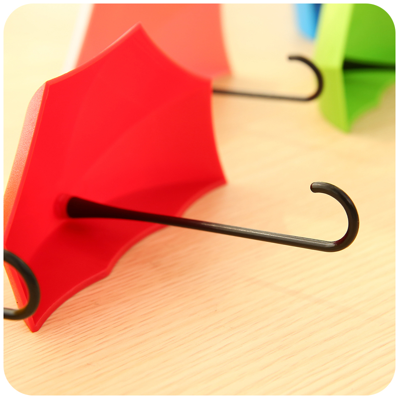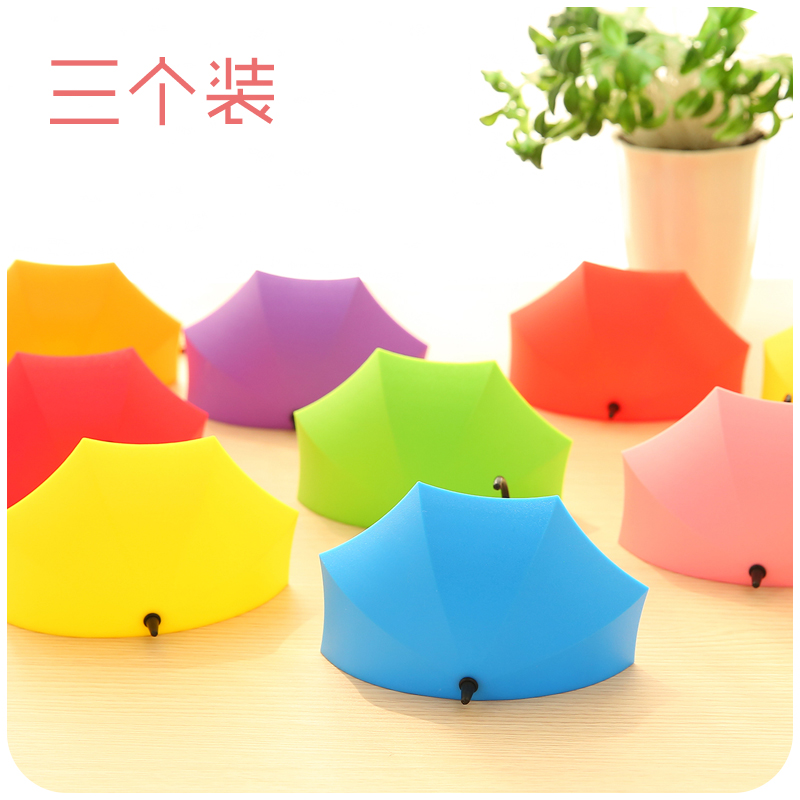創意時尚彩色雨傘墻壁掛鉤居家浴室裝飾掛鉤粘鉤三個裝