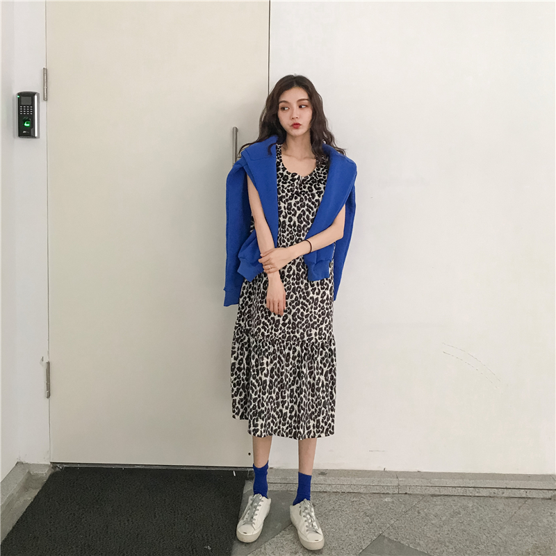 藍色衛衣|灰色衛衣|豹紋打底裙