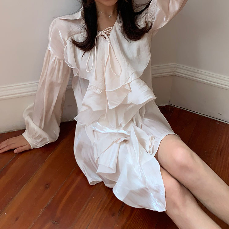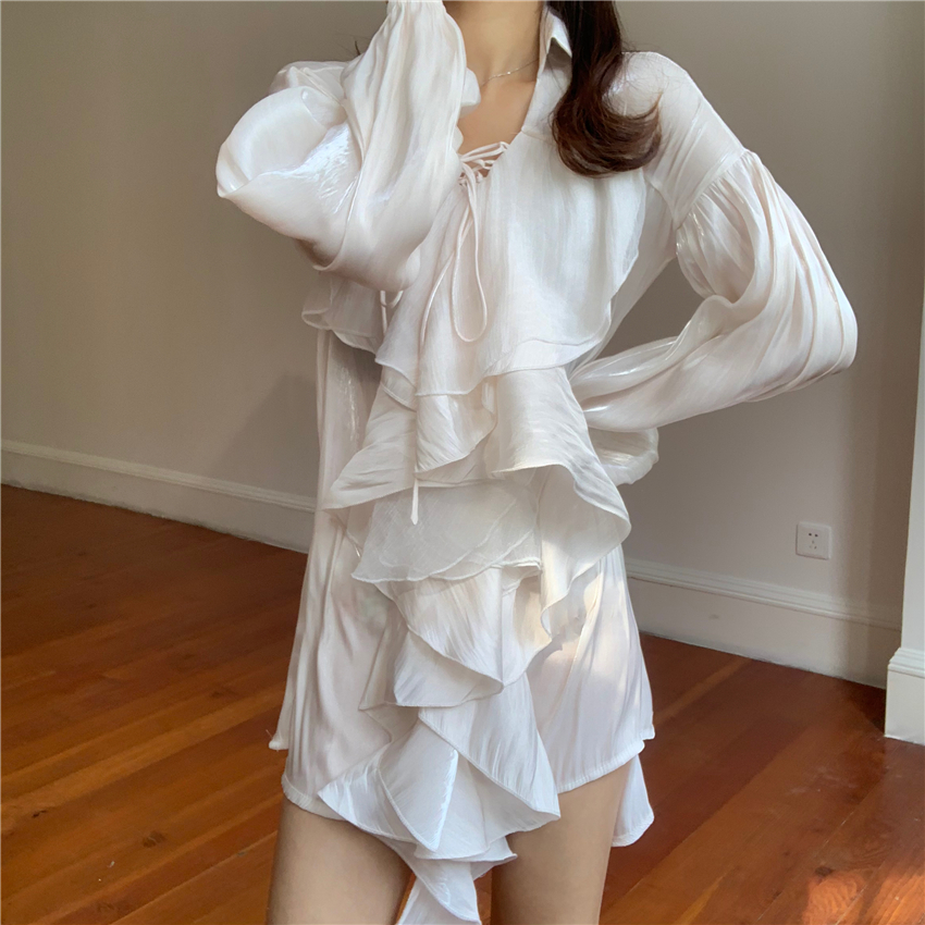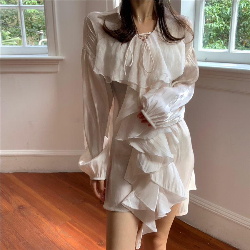 / 慵懶chic風襯衣女2018新款秋冬韓版時尚流光綢中長款雪紡襯衫女潮