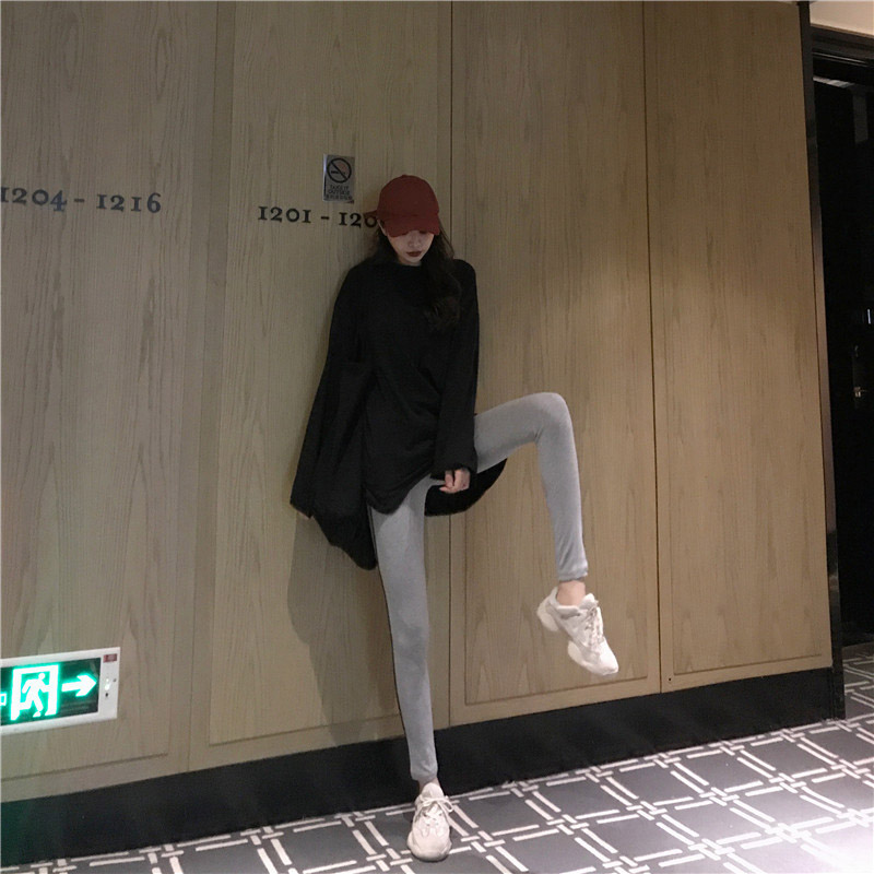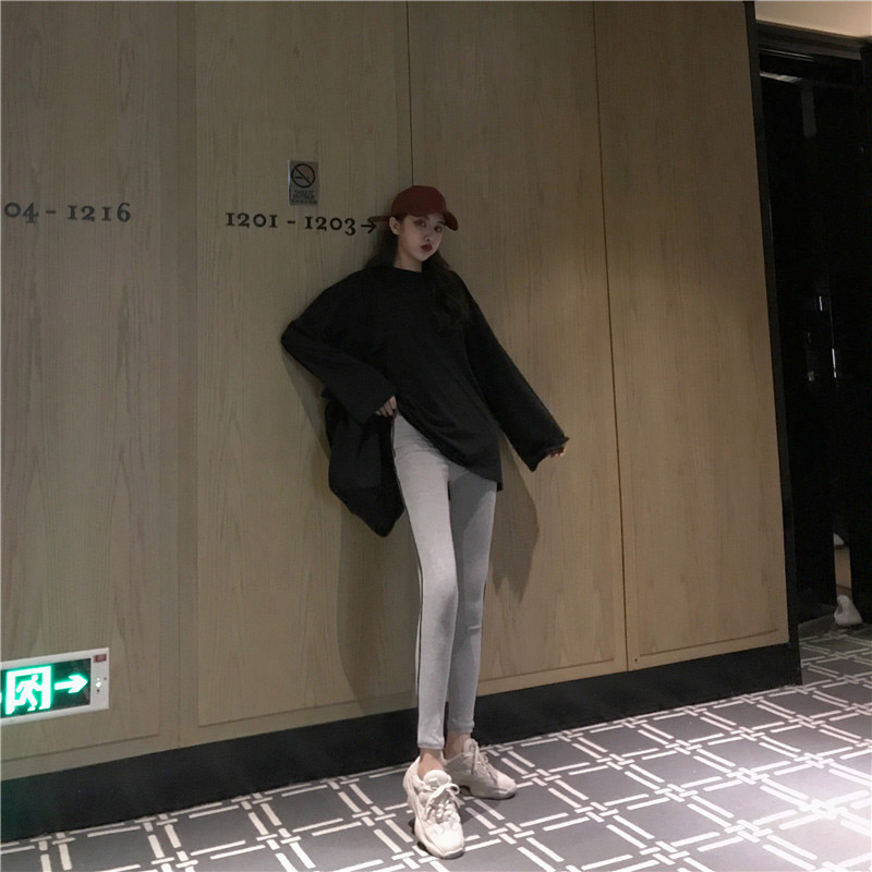 / 2018秋季新款女百搭修身顯瘦薄款韓版高腰純色小腳褲外穿打底褲潮