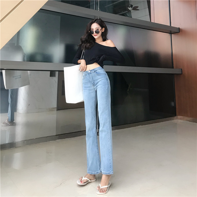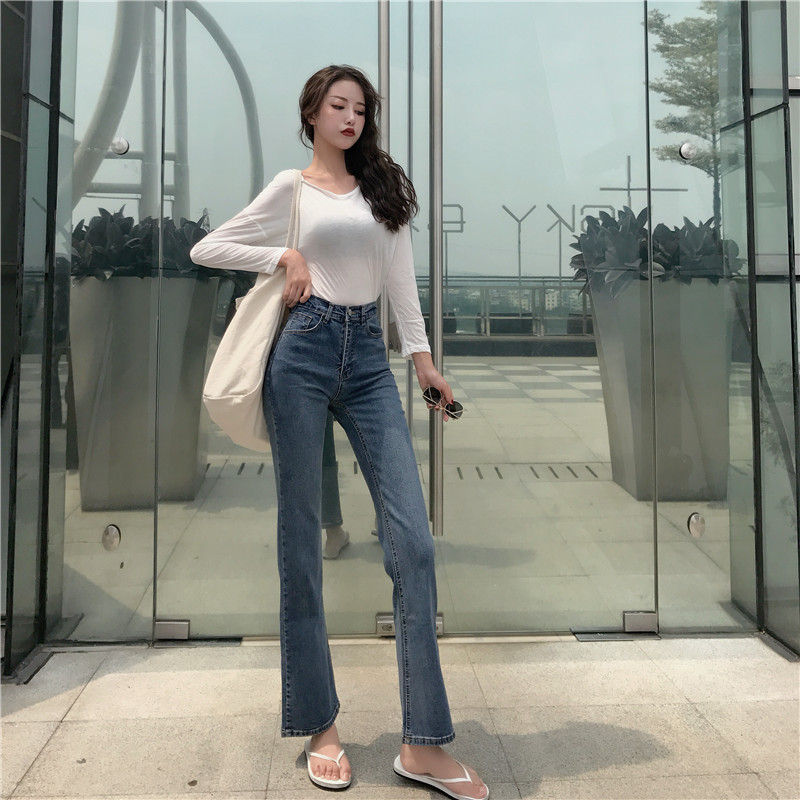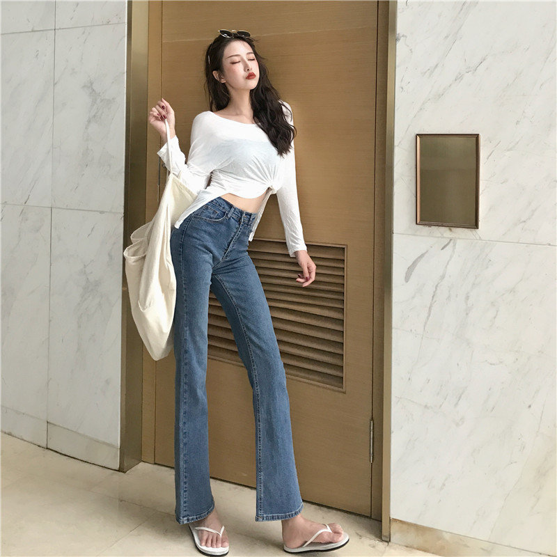 港味褲子女2018新款韓版秋季百搭高腰修身微喇叭長褲顯瘦牛仔褲