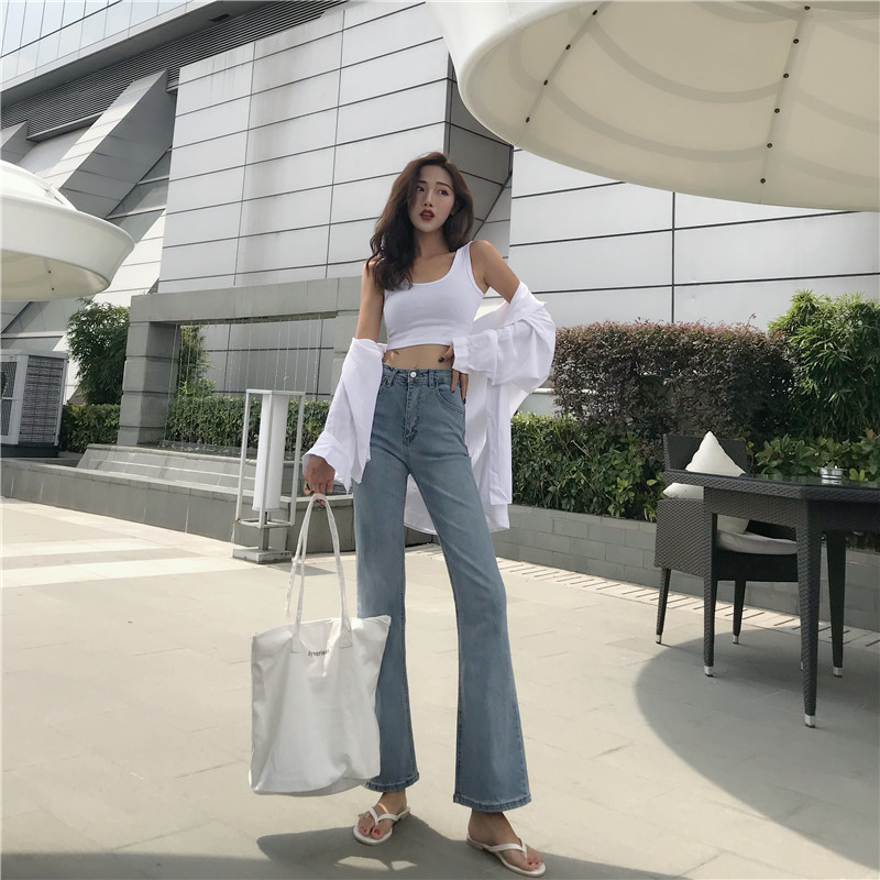 / 港味褲子女2018新款韓版秋季百搭高腰修身微喇叭長褲顯瘦牛仔褲