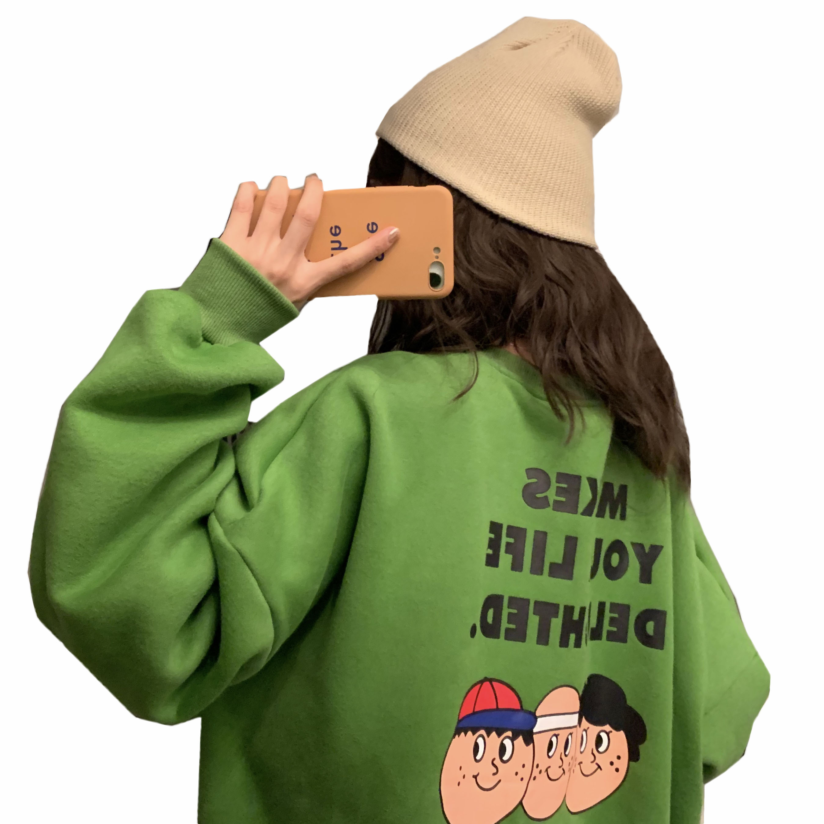 / 韓版港味秋冬2018新款簡約寬松百搭前后插畫印花加絨加厚衛衣女潮