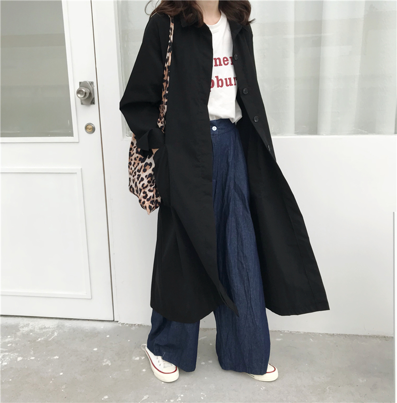 / 小香風秋裝新款韓版chic韓風單排扣百搭時尚氣質長款風衣寬松外套