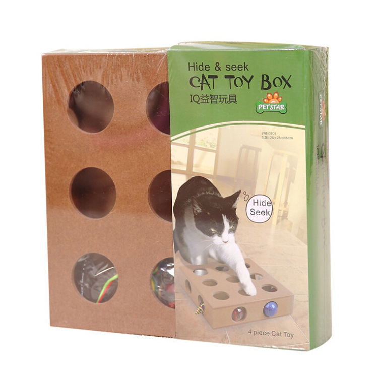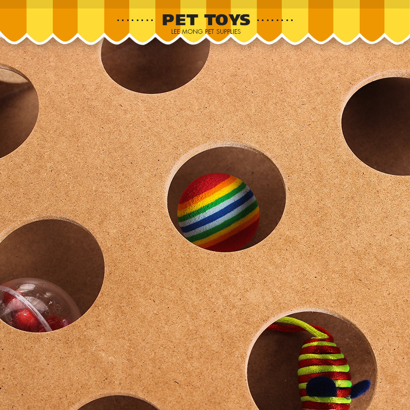 伊麗多孔木質益智貓玩具 貓轉盤貓咪捉迷藏互動玩具球批發