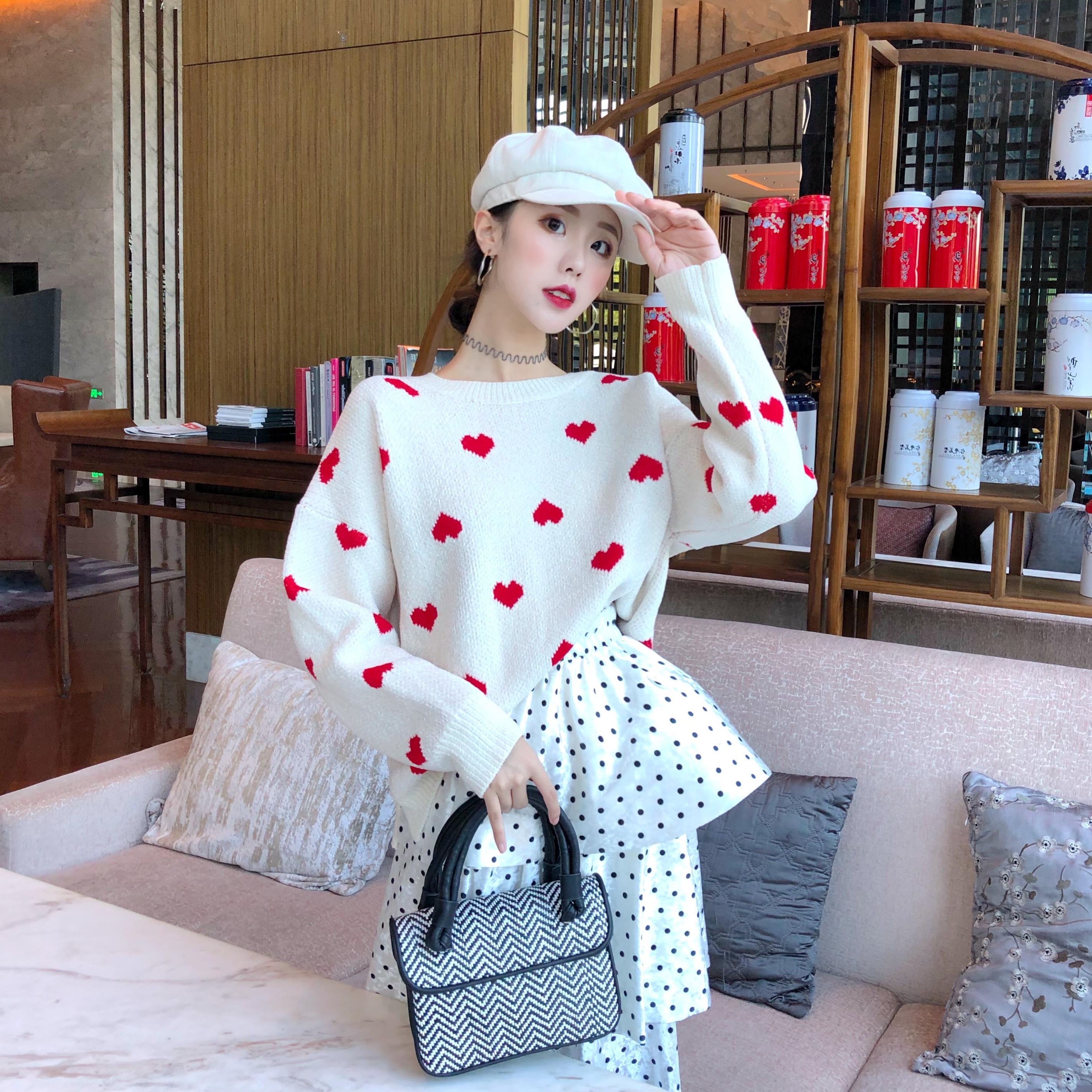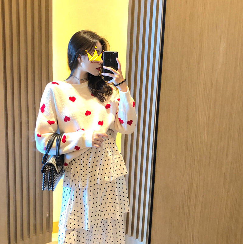 愛心毛衣白色|愛心毛衣紅色|蕾絲蛋糕裙|波點蛋糕裙