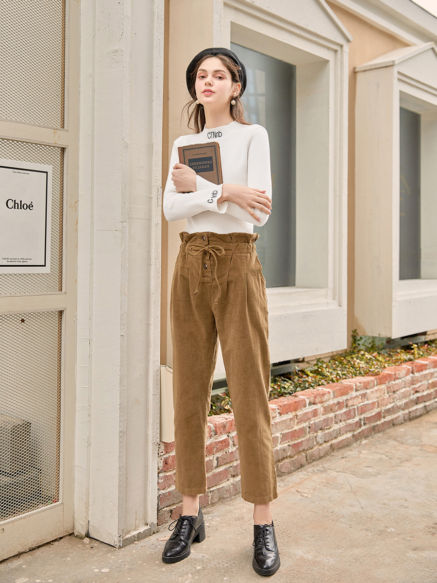 MG小象休閑褲女秋季2018新款高腰復古直筒褲寬松學生ulzzang褲子