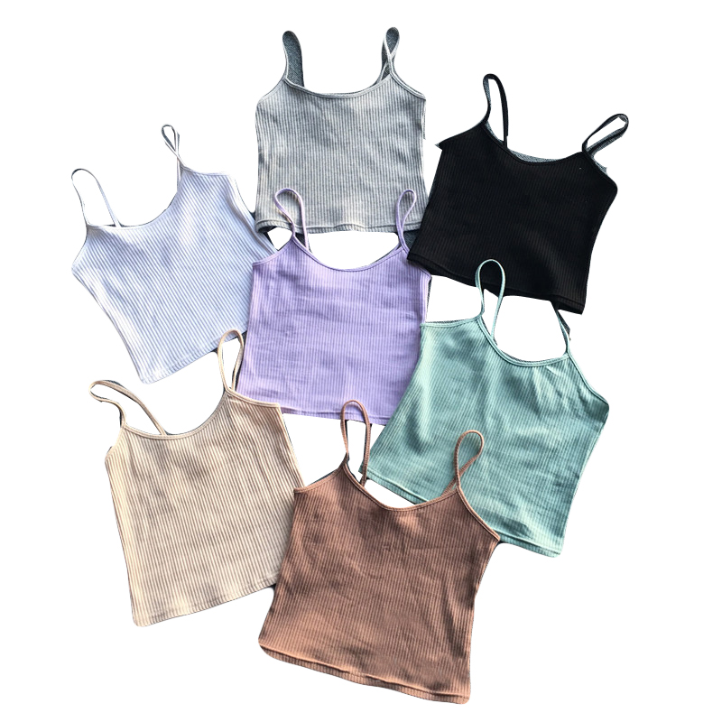 / 2018韓國新款簡約百搭彈力修身顯瘦純色針織吊帶背心女夏上衣