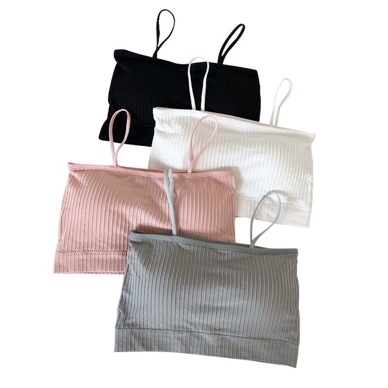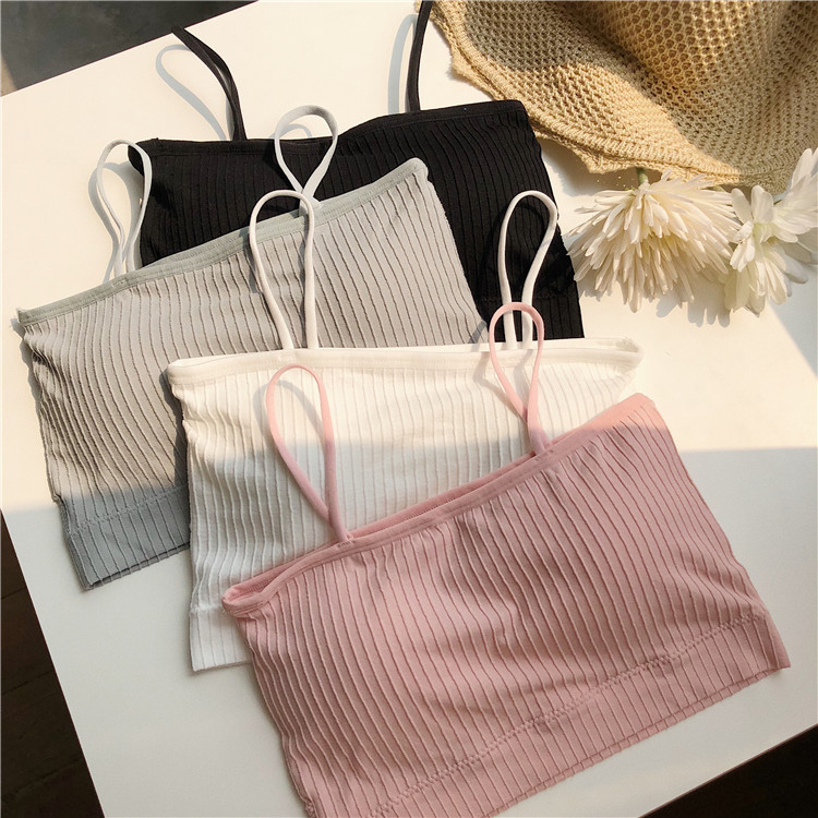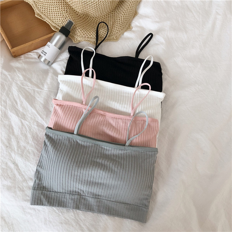 / 新款韓版百搭防走光抹胸裹胸內衣修身顯瘦短款細吊帶小背心帶胸墊