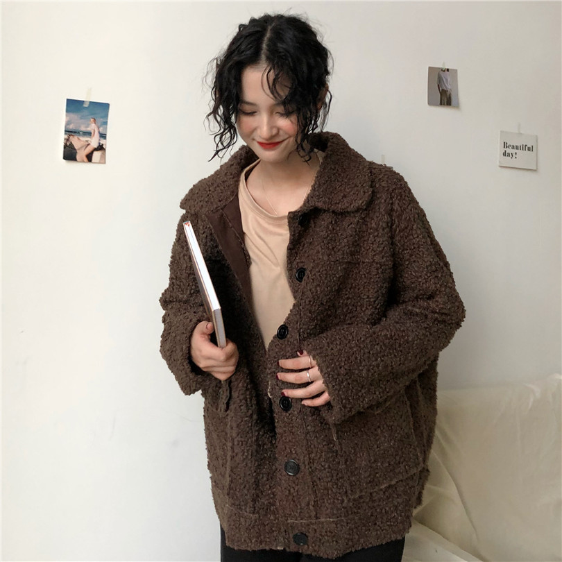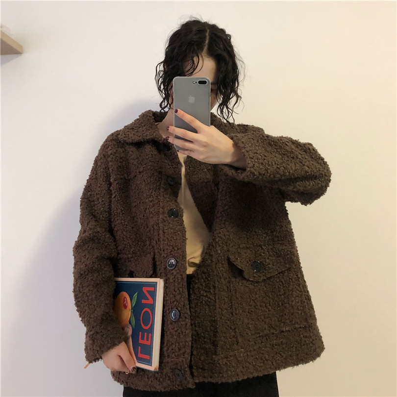 / 冬季女裝新款韓版BF風寬松加厚雙層復古氣質時尚休閑開衫上衣外套
