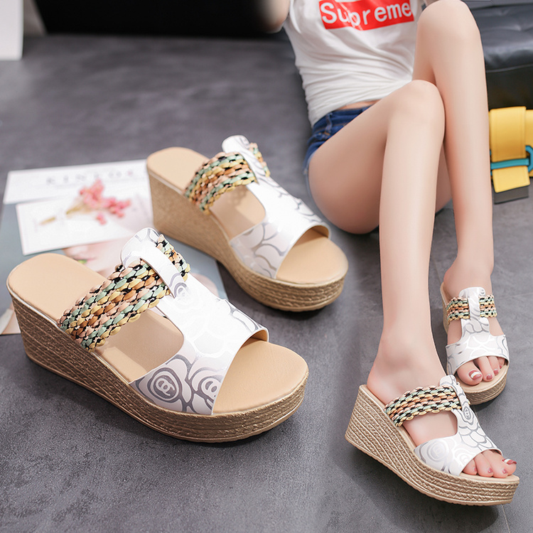 夏女凉拖鞋厚底坡跟拖鞋女室外松糕防滑百搭韓版一字拖鞋