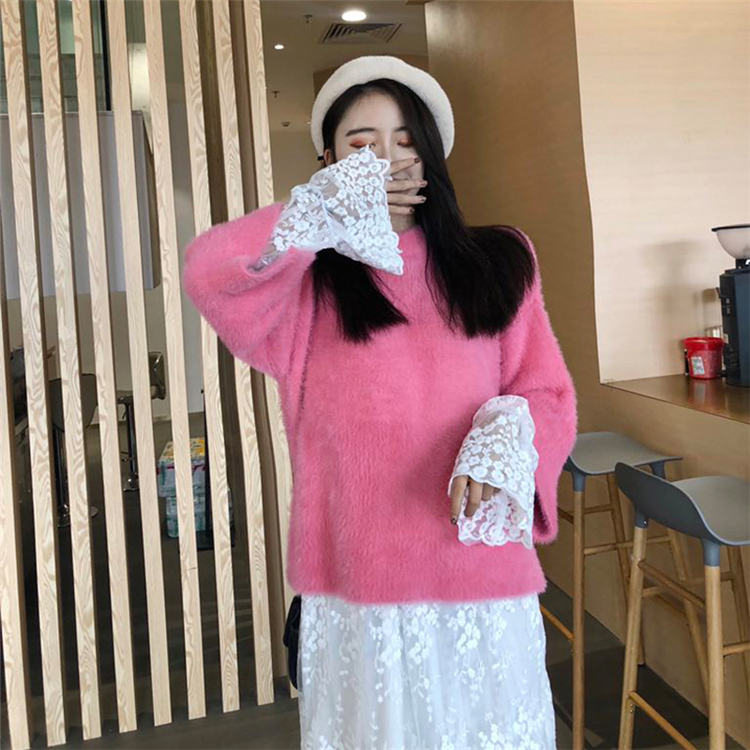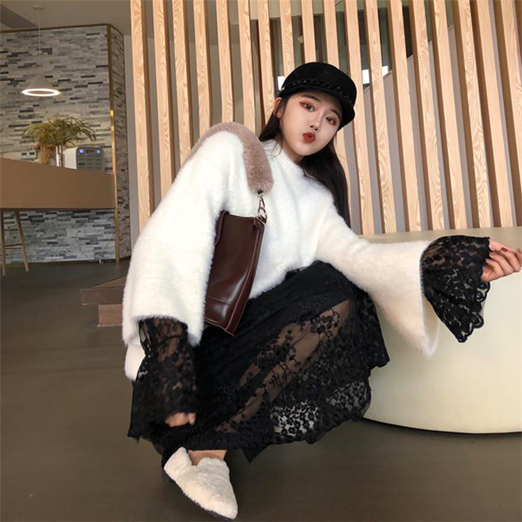 落肩長袖的設計,增加了一絲慵懶氣質,溫暖感更甚