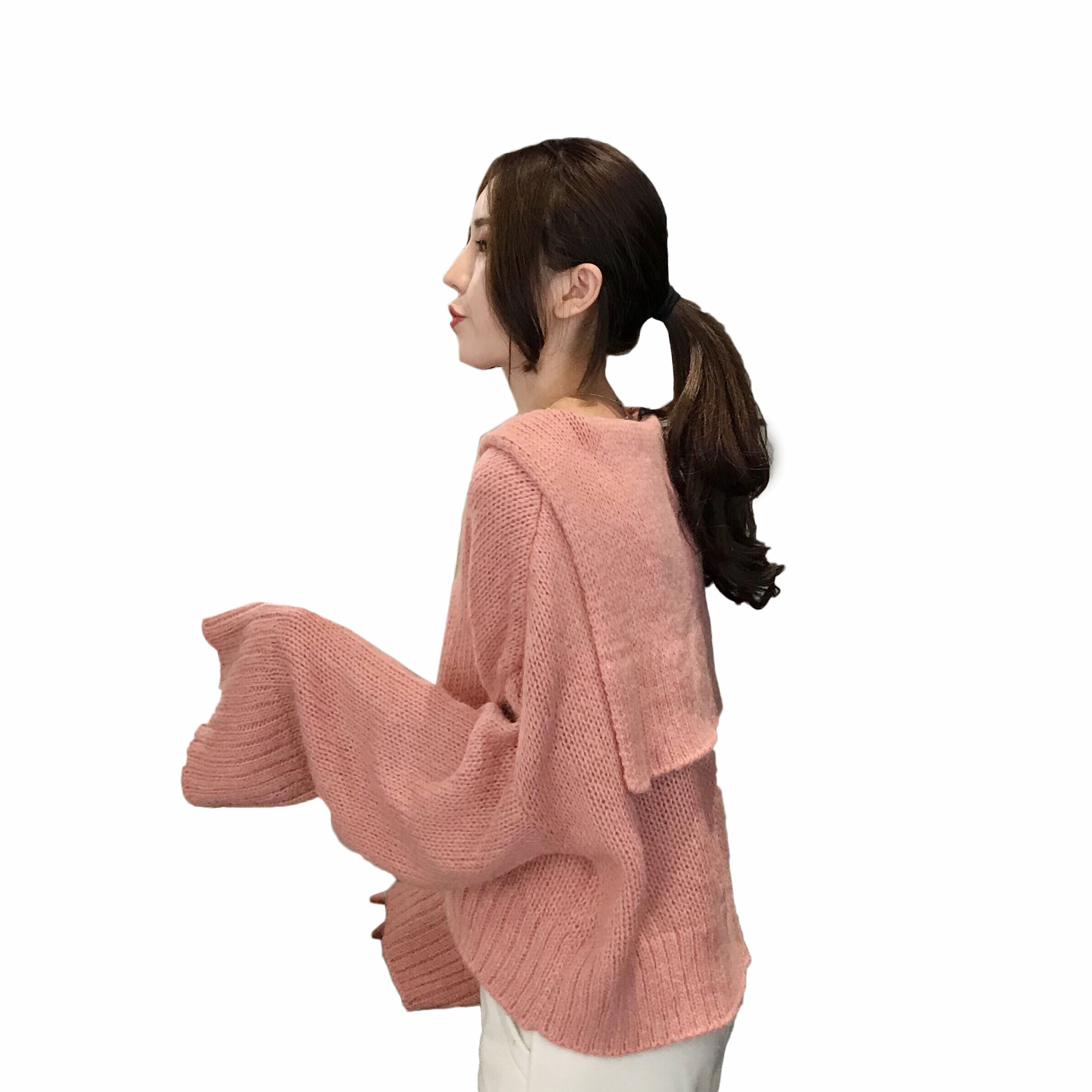 / 復古韓國chic風海軍領粉色小清新毛衣女2018新款套頭長袖針織衫