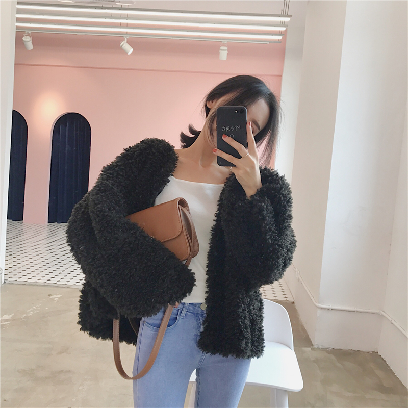 / 2018秋冬季韓版新款時尚chic短款羊羔毛開衫毛絨長袖外套寬松上衣