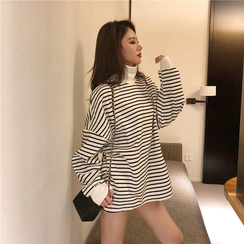 衛衣2018新款女長袖韓版寬松顯瘦oversize印花半高領慵懶長款裙子