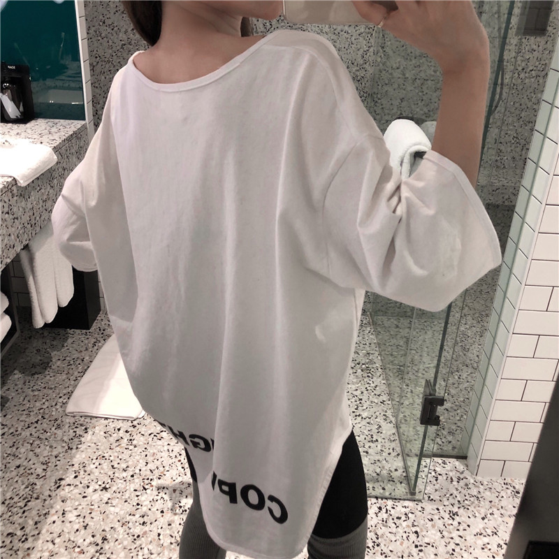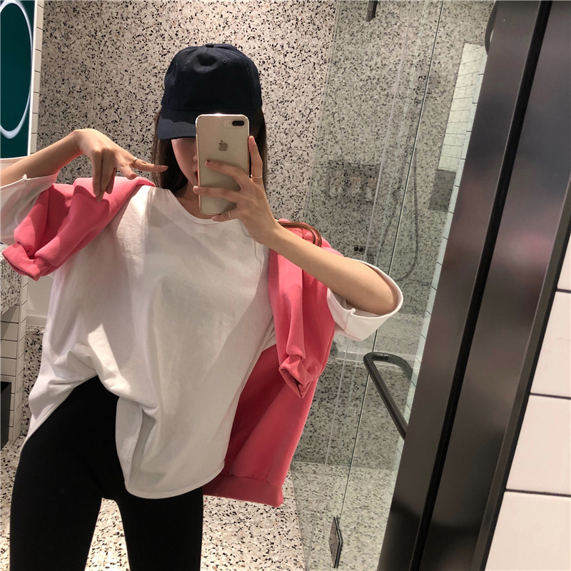 秋天上衣女新款時尚百搭基礎寬松馬卡龍純色圓領中長款T恤10色入