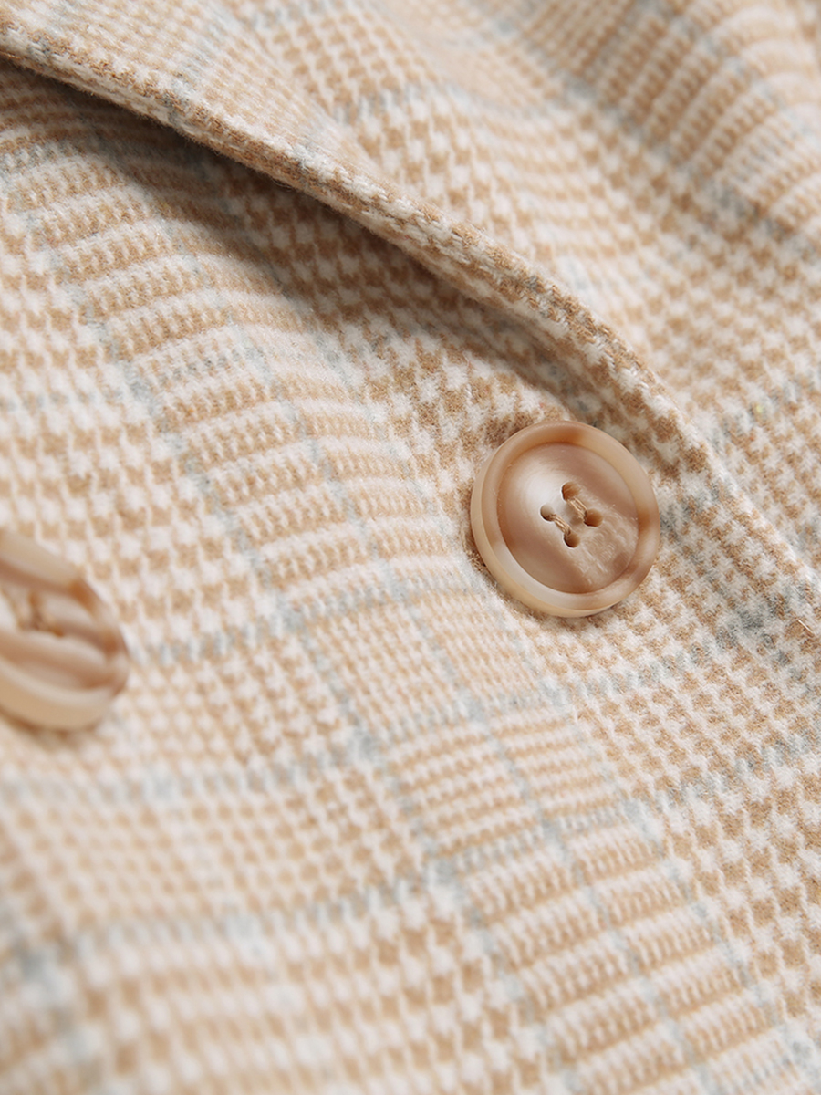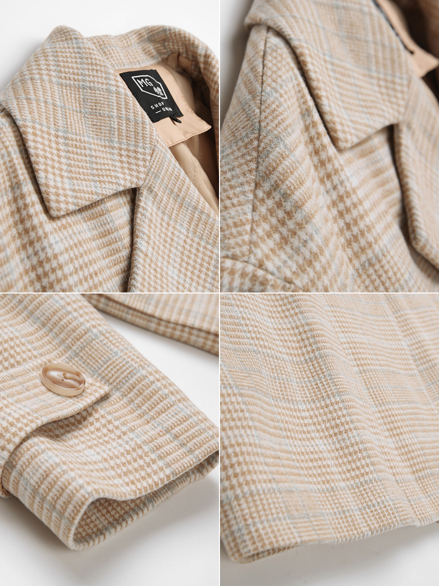 MG小象復古格子毛呢外套女中長款2018新款蝴蝶結收腰冬季呢子大衣