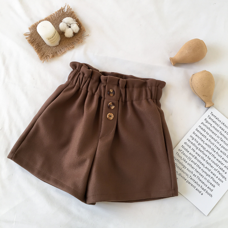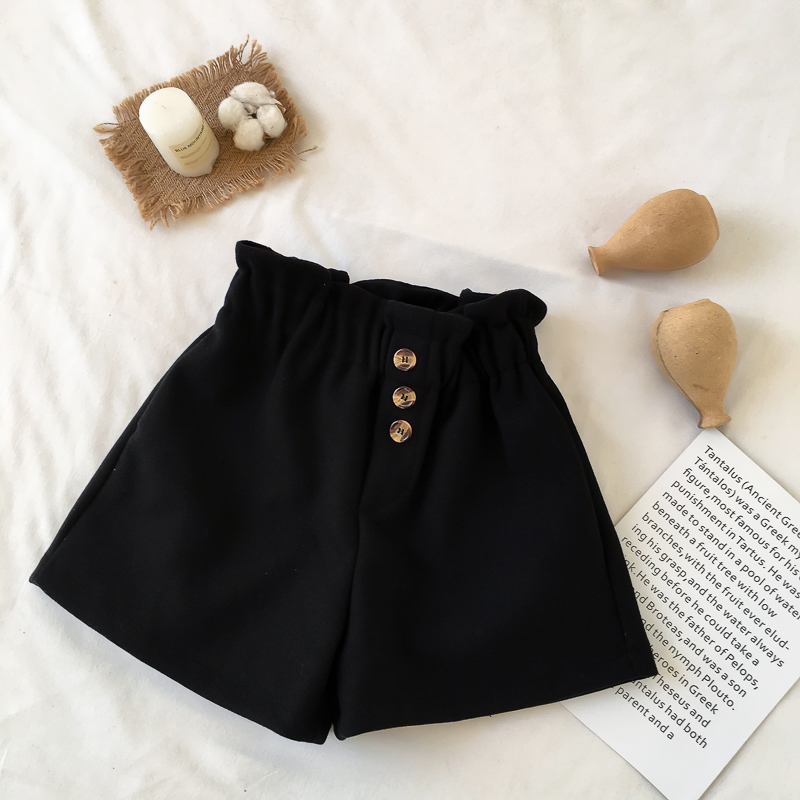 / 褲子女新款韓版百搭chic秋冬高腰加厚松緊腰高腰休閑短褲直筒靴褲
