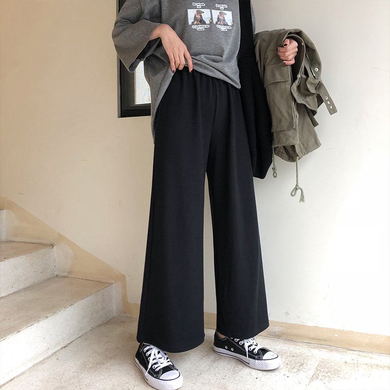 A7seven針織闊腿褲女2019春夏裝新款墜感休閑褲韓版高腰黑色長褲