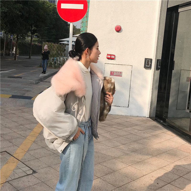 港風外套女秋冬2018新款韓版百搭寬松氣質毛領加厚長袖棉服上衣潮