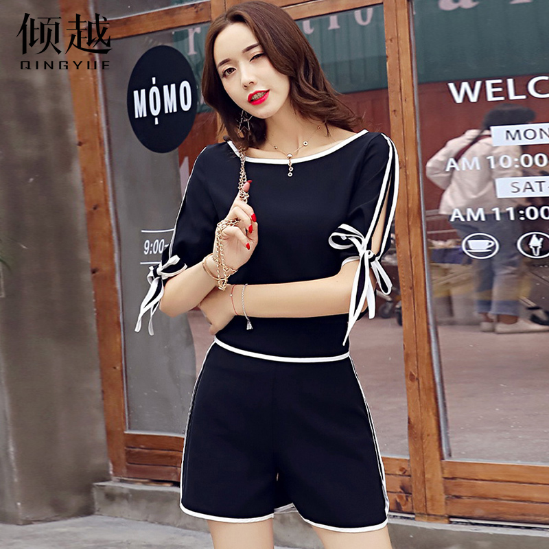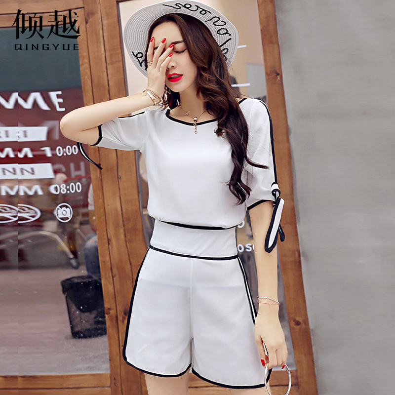 / 2017夏季新款韓版短袖兩件套休閑時尚夏裝短褲套裝氣質小香風女裝