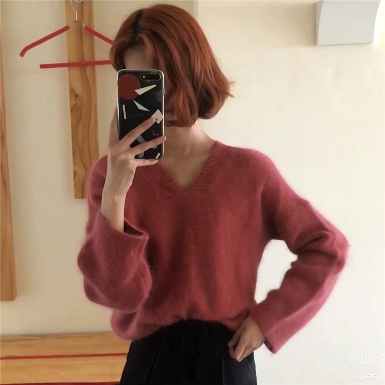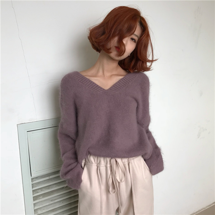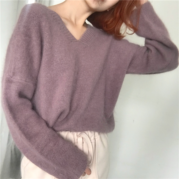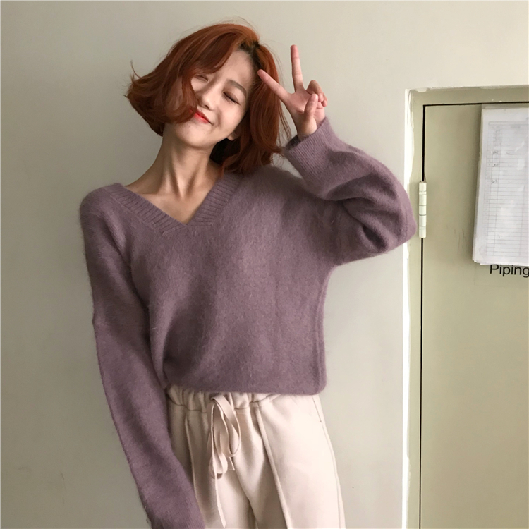 / 2018秋冬新款chic復古百搭慵懶風純色簡約百搭馬海毛套頭毛衣女潮