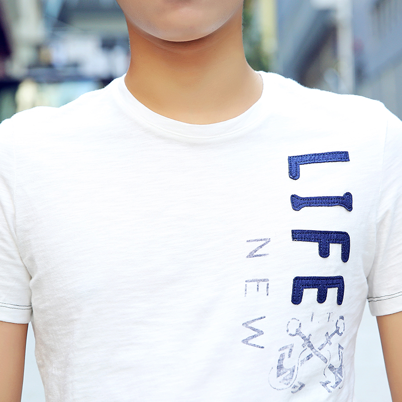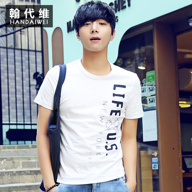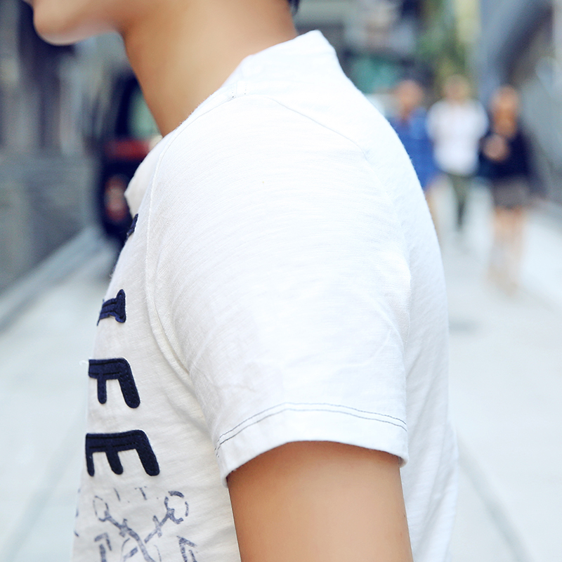 / 夏季新品男士圓領修身白色字母英文韓版短袖t恤上衣潮