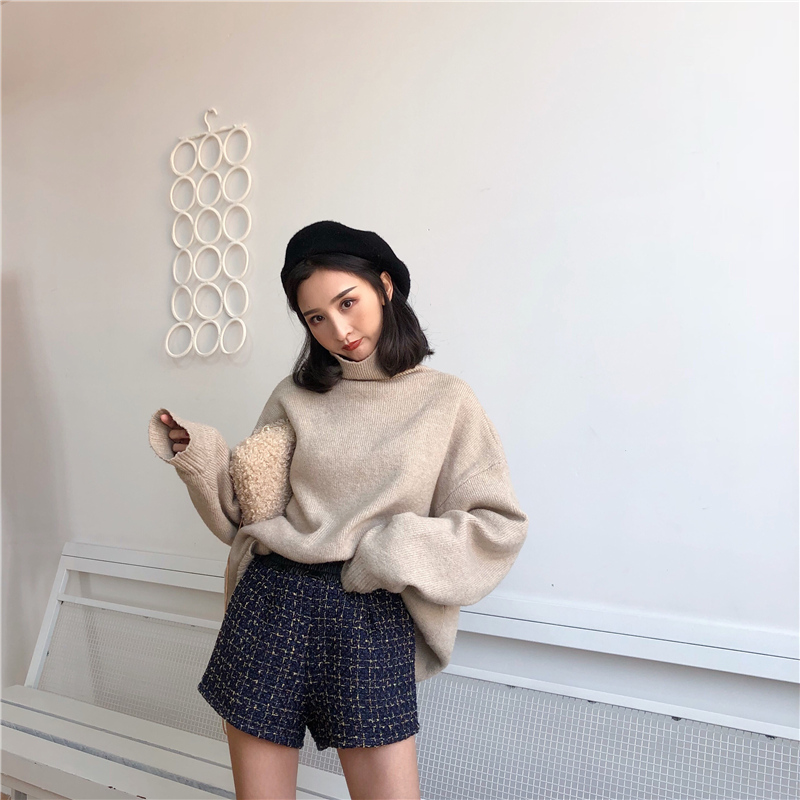 / 港味chic秋冬季新款褲子pu皮拼接格子粗花呢短褲女加絨寬松闊腿褲