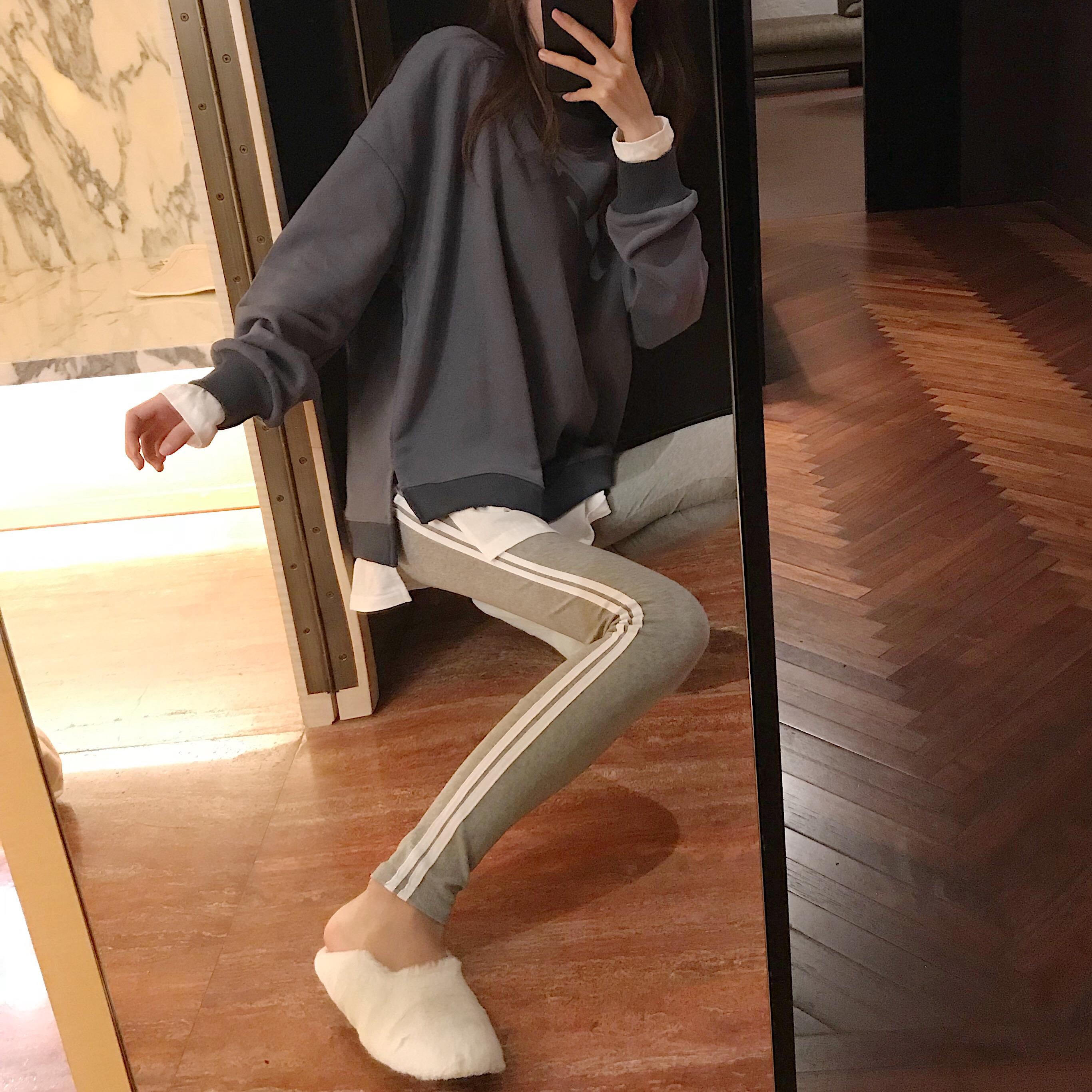 新款韓版時尚套裝寬松慵懶風拼色衛衣緊身小腳褲長褲子chic兩件套