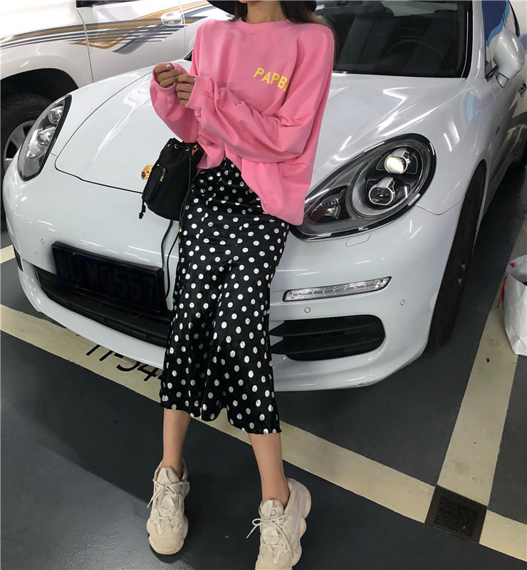 / 波點魚尾半身裙彈力高腰裙子女2018新款時尚百搭復古韓版秋裝長裙