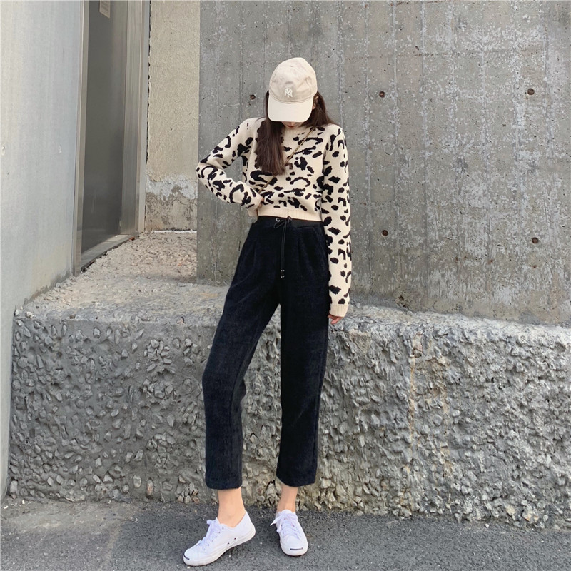 / 褲子女韓版2018秋冬新款松緊時尚百搭高腰九分煙管蘿卜褲哈倫褲潮
