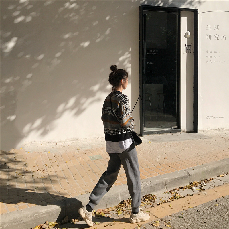 / 網紅同款包芯紗寬松針織上衣+百搭針織蘿卜褲