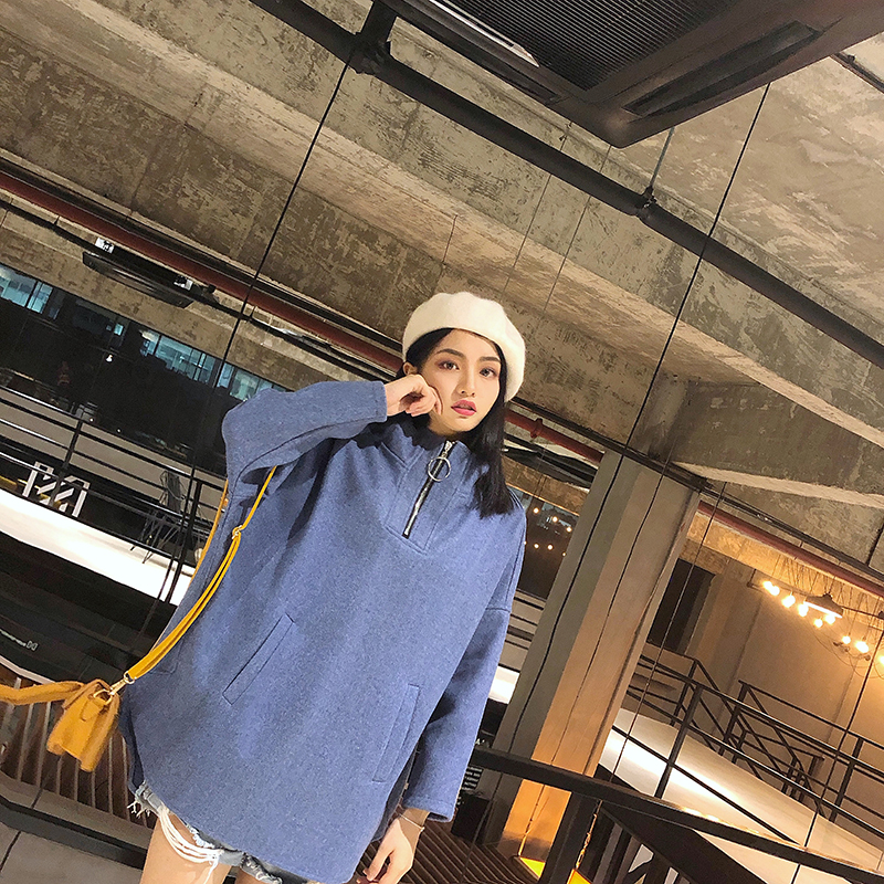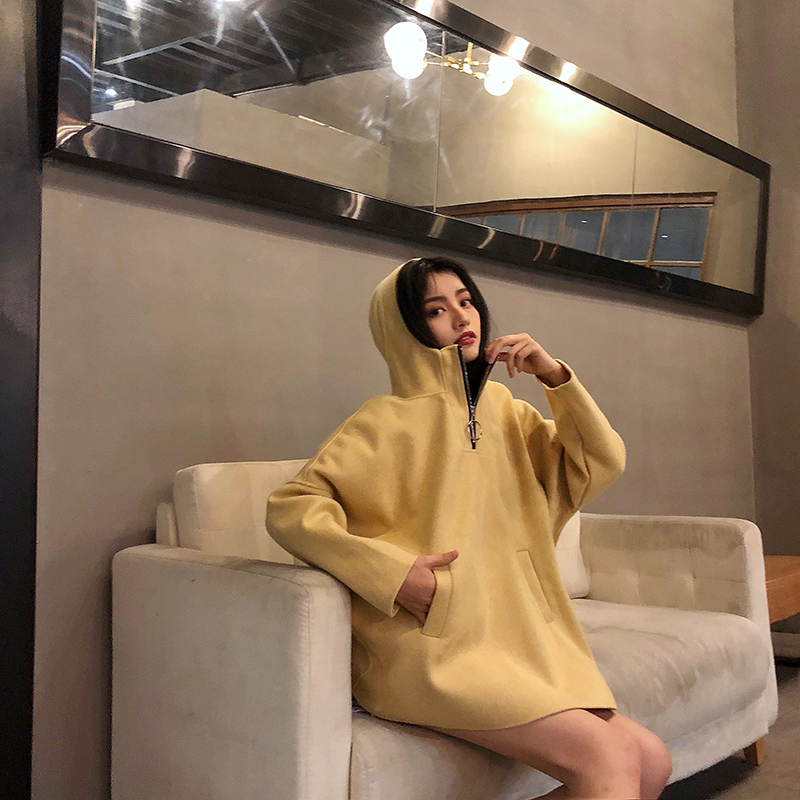 / 慵懶風寬松純色復古韓版套頭拉鏈連帽衛衣女2018新款大碼顯瘦上衣