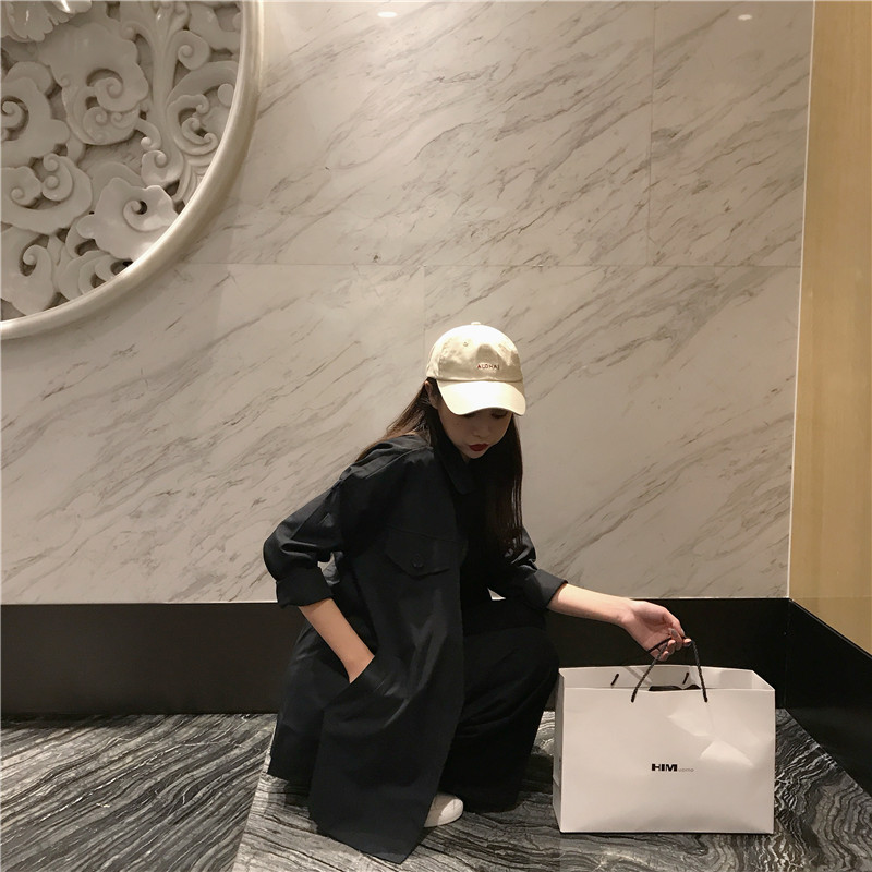 / 小香風時尚秋裝chic氣質中長款風衣兩穿翻領純色開衫綁帶顯瘦外套
