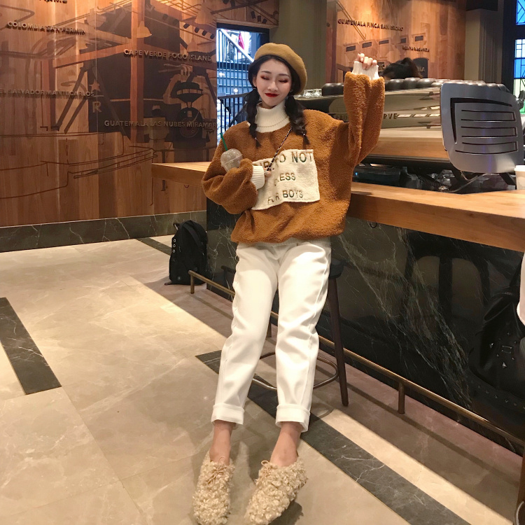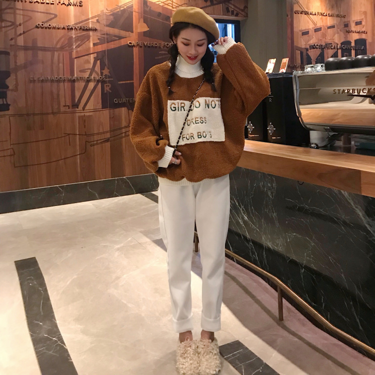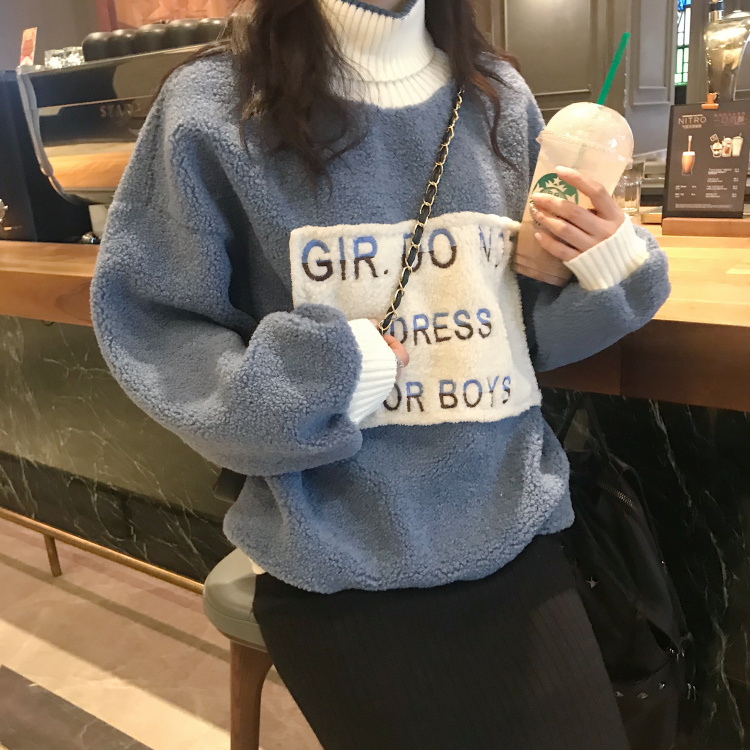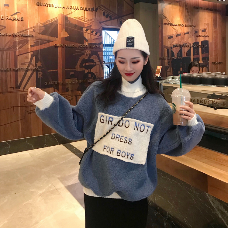 chic秋冬上衣慵懶風寬松仿羊羔絨連帽套頭衛衣女秋冬2018新款外套