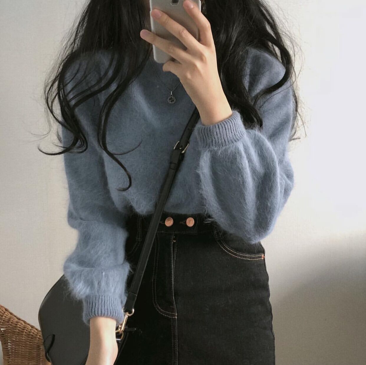 小清新氣質時尚女裝上衣新款韓版溫柔毛茸茸保暖純色百搭針織毛衣