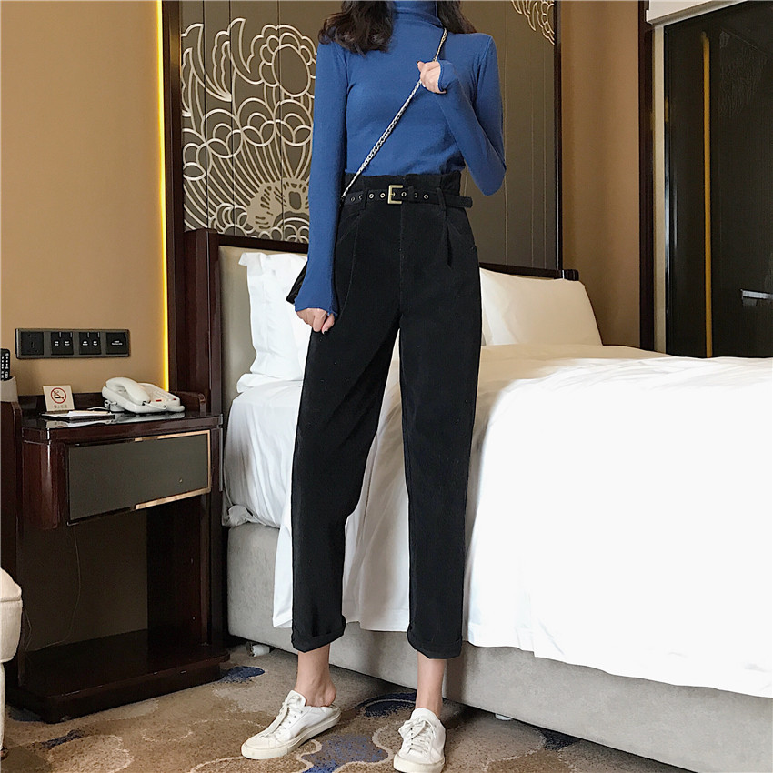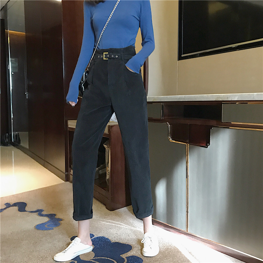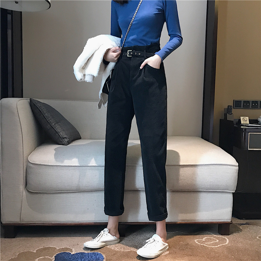 / 褲子女韓版chic秋冬新款高腰百搭學生長褲寬松休閑哈倫褲潮配皮帶