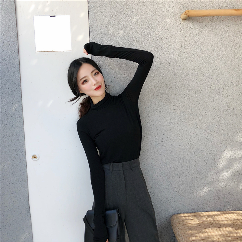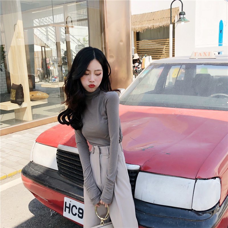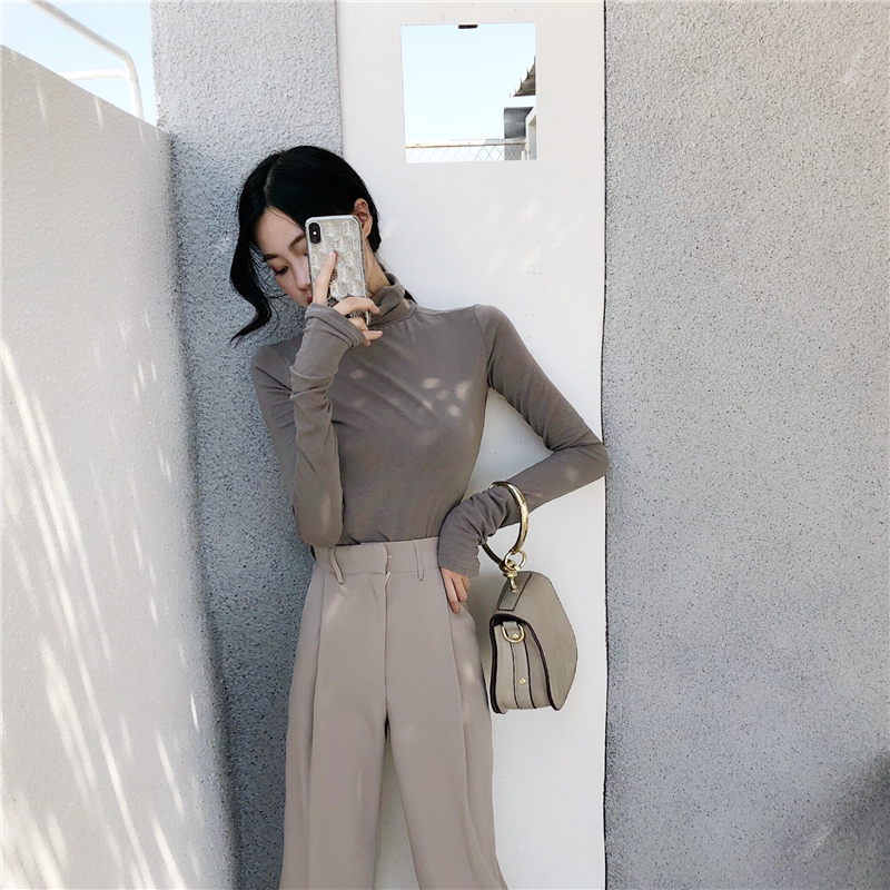 高領打底衫韓版修身顯瘦T恤兩件套寬松顯瘦闊腿西裝褲時尚套裝潮