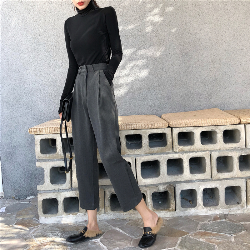 / 高領打底衫韓版修身顯瘦T恤兩件套寬松顯瘦闊腿西裝褲時尚套裝潮