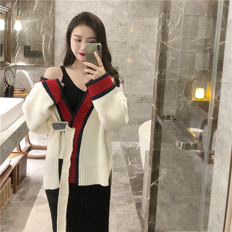 / 外套bf風慵懶毛衣開衫短款寬松針織打底針織連衣裙時尚套裝兩件套