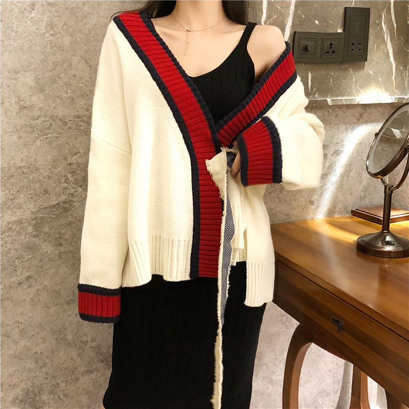 白色毛衣開衫|黑色打底裙