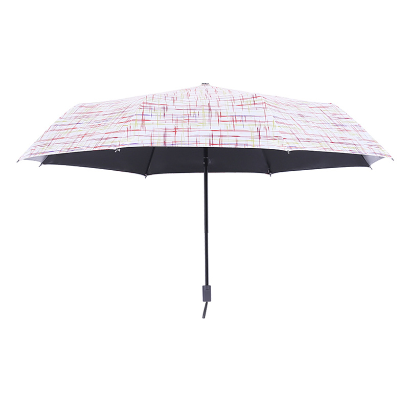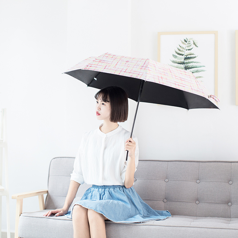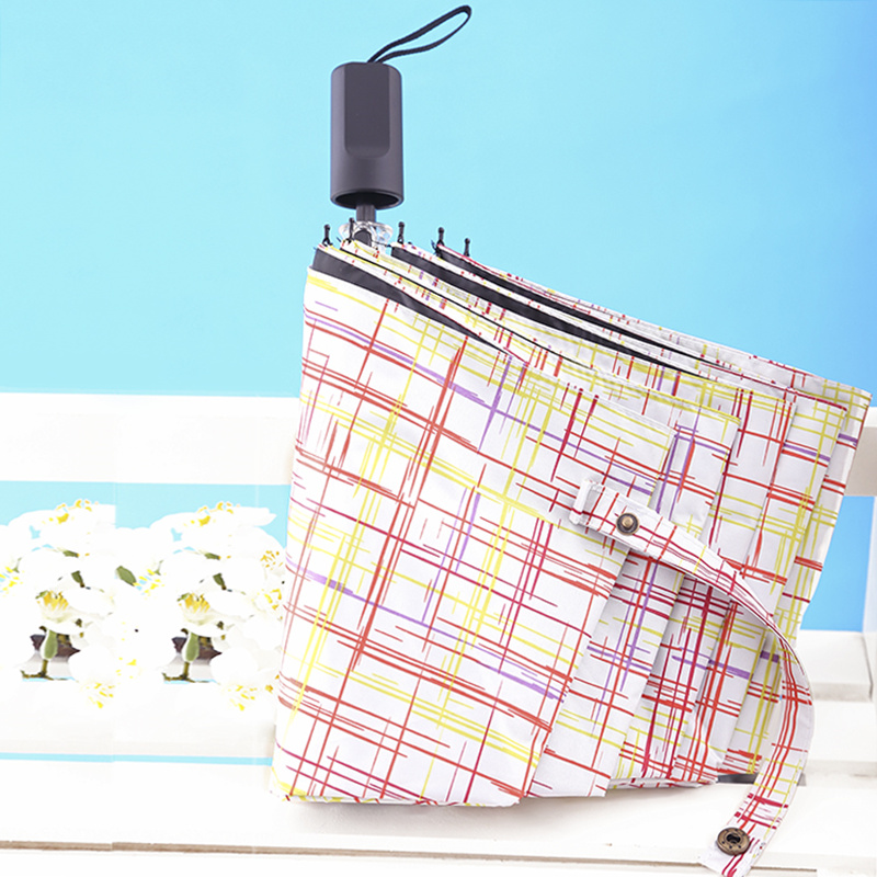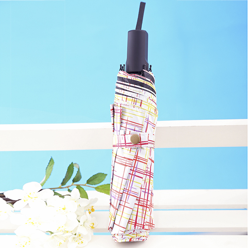 彩格線條黑膠防曬防紫外線太陽雨傘晴雨兩用小清新遮陽三折雨傘女