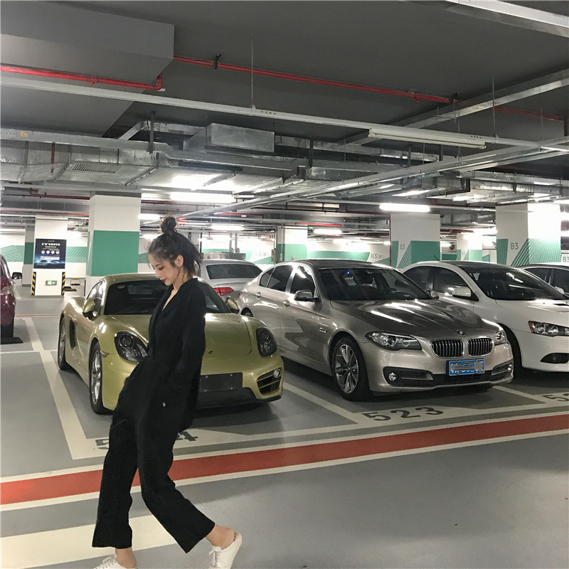 2018港風新款復古慵懶休閑氣質高腰顯瘦時尚直筒純色連衣褲女潮流