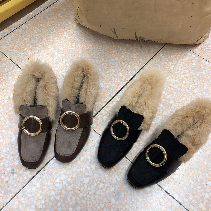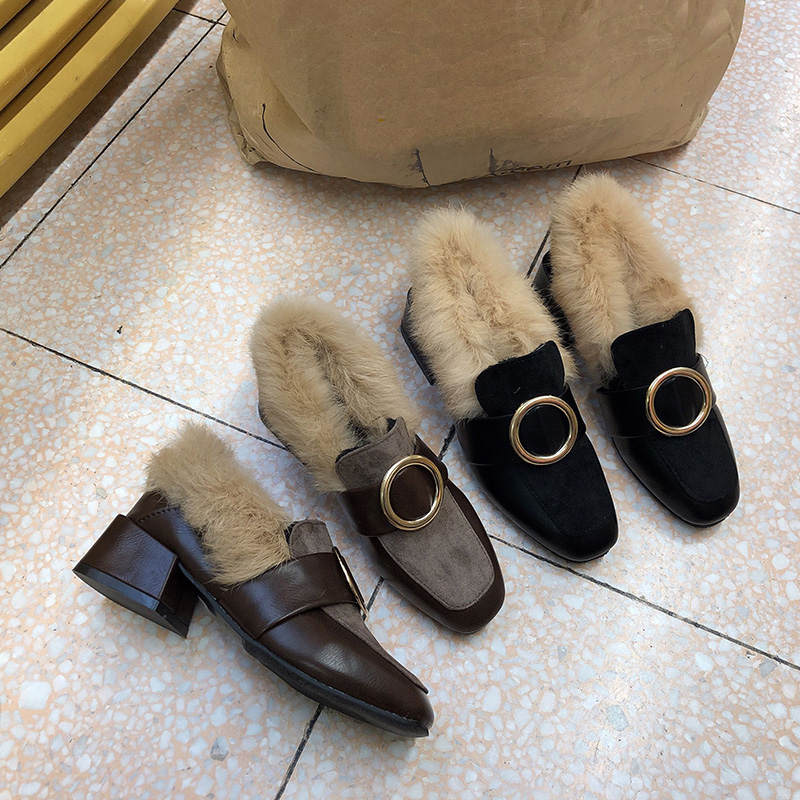 / 秋冬季新款時尚氣質韓版粗跟毛毛鞋加絨保暖兔毛拖鞋百搭包頭鞋女