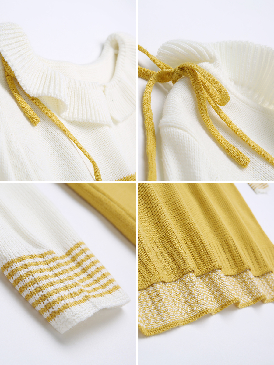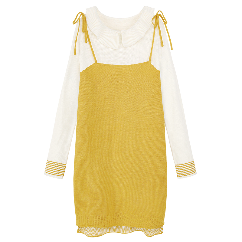 MG小象小清新毛衣女秋冬新款甜美假兩件針織衫寬松長袖套頭毛衣裙