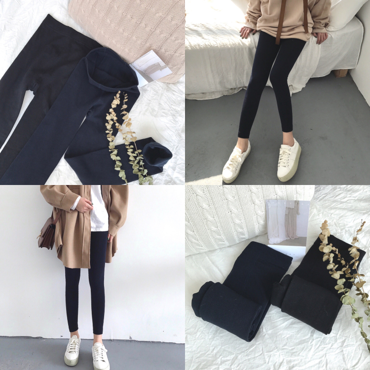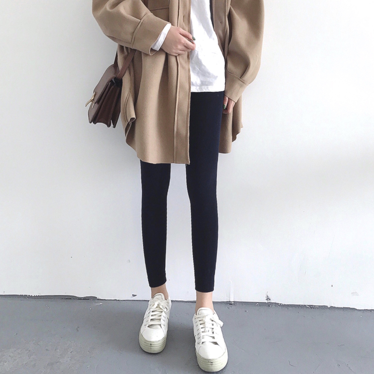 復古韓風chic加絨加厚保暖打底褲女2018新款黑色修身顯瘦百搭褲子