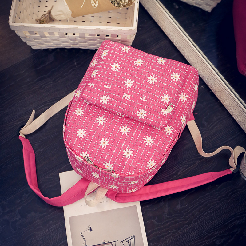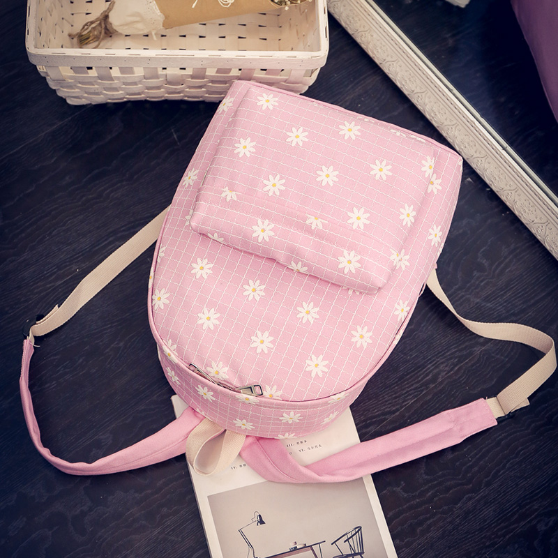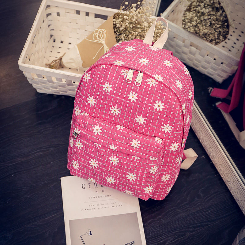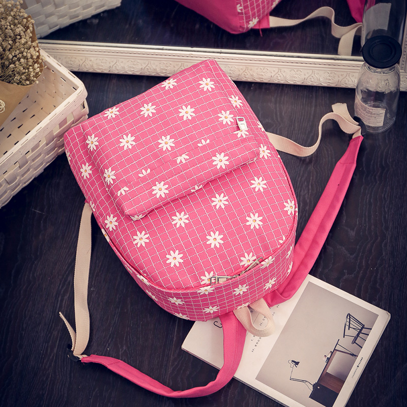 / 森系小雛菊花格子帆布背包女日系小清新雙肩包少女中學生書包
