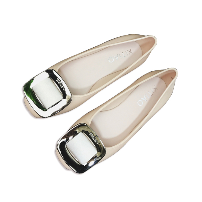 / 春季新款時尚方扣淺口平底單鞋舒適軟底果凍鞋方平頭工作女鞋
